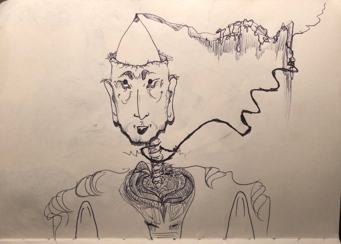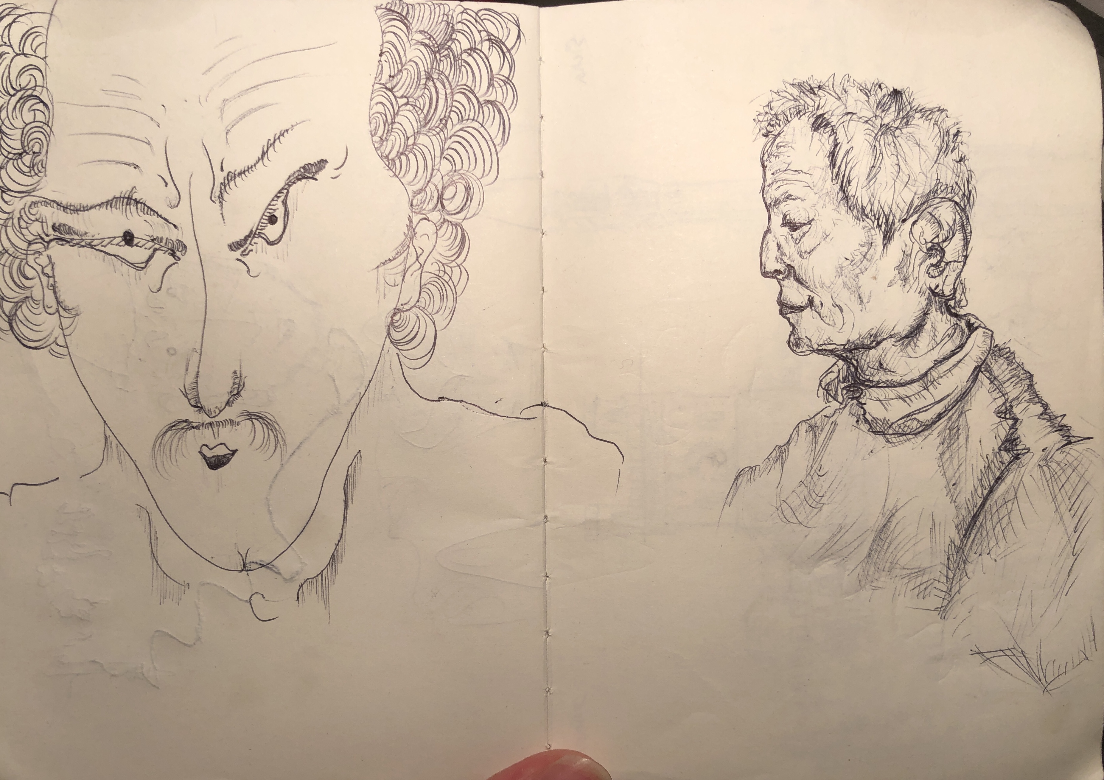 The second sketch consists of two portraits of the same man, in different styles. I wanted to juxtapose the Japanese Ukiyo-E style sketch with a realistic one, and compared the feelings each triggers. Turns out, I like the one on the left better, because it is not a print of reality.