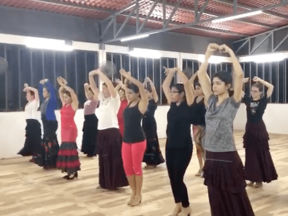 Featured: Dancer Irene Garcia in the black and red ruffle skirt (first row).